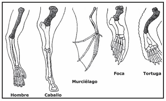 Observa la imagen y comenta qué similitudes anatómicas encuentras y cómo estas demuestran la existencia de un ancestro común.